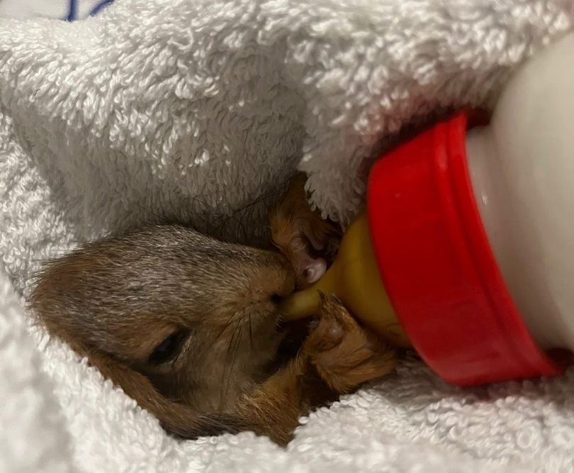 Волонтёры выкармливают оставшихся без родителей бельчат