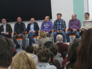 Следующей частью программы стала лекция, на которой вступительную речь произнёс ректор университета Михаил Федорук. После него выступила Маргарита Романенко – вирусолог, генный инженер и руководитель группы в лаборатории биотехнологии и вирусологии НГУ. Она представила бывших выпускников университета, добившихся большого успеха: Игоря Солодова, Андрея Тулупова, Андрея Бекарева, Дениса Колодного, Дениса Морозова, Ирека Ибатулина, Андрея Кудряшова и Сергея Смирнова. У них можно было спрашивать всё что угодно. За самые интересные вопросы давали тематические призы.