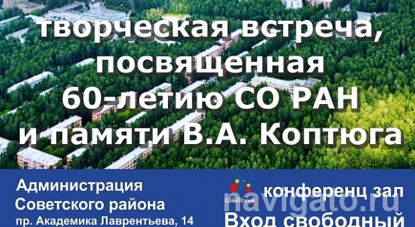 9 июня в 14-00 в конференц-зале администрации Советского района (проспект Лаврентьева, 14) состоится встреча, посвященная 60-летию СО РАН и памяти В.А. Коптюга.