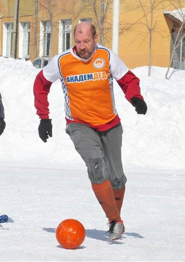 На снимках: нападающий «Академдеда» Михаил Байдин, не так давно отметивший 50-летие;