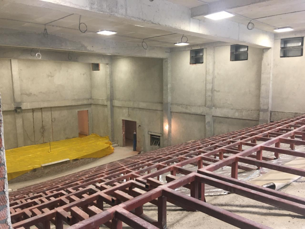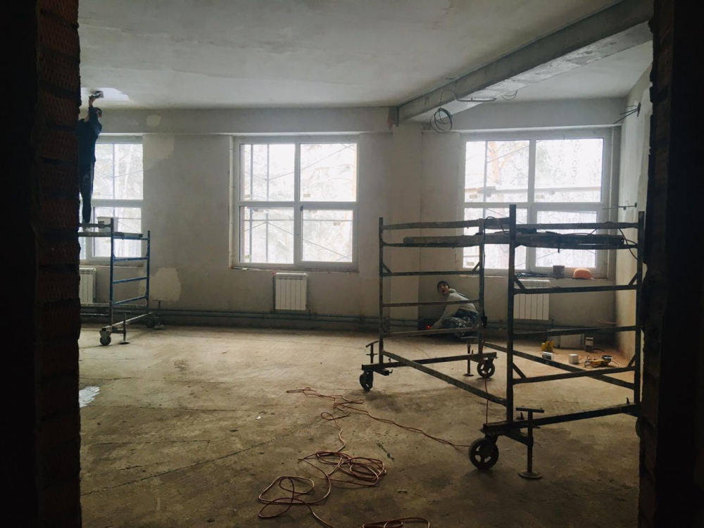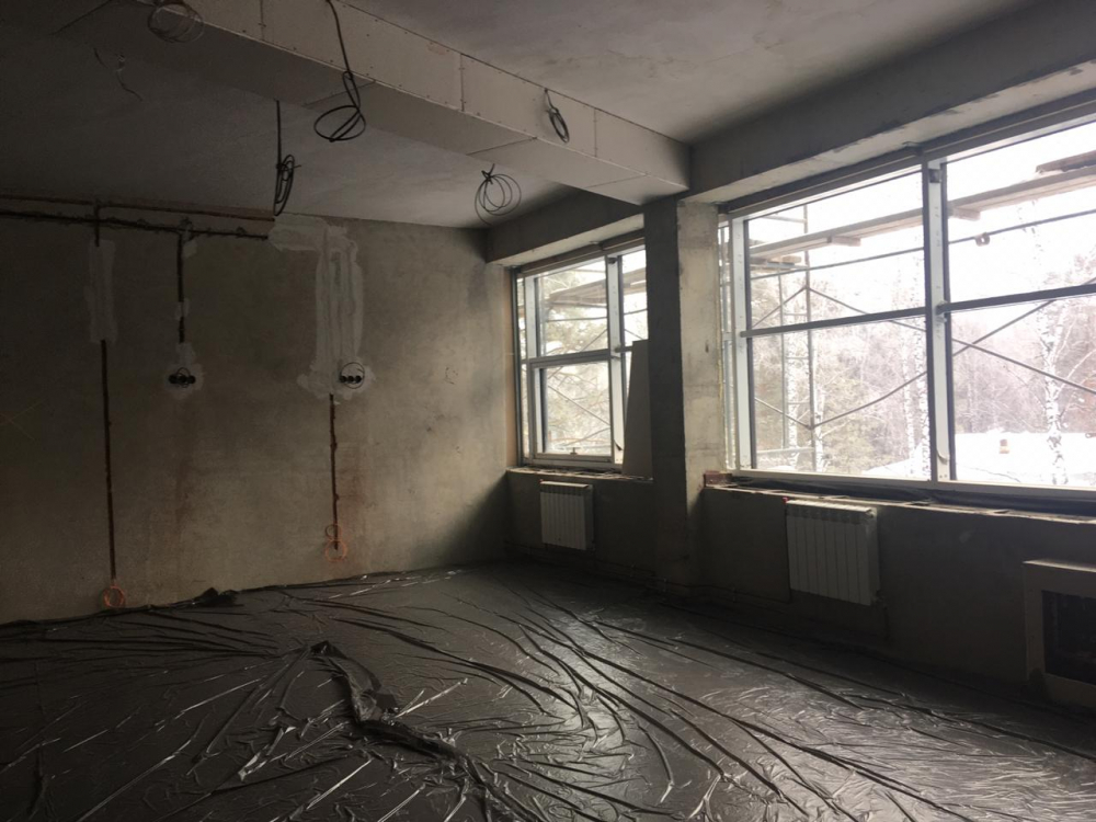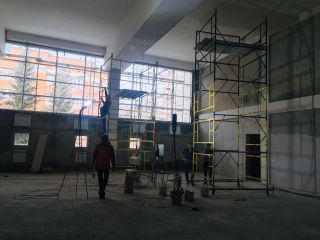 Пристройка к одному из самых известных образовательных учреждений Новосибирска возводится по авторскому проекту. На объекте кипит работа: строители штукатурят и красят стены, заливают стяжку пола, проводят освещение и отопление. По плану срок сдачи объекта – 31 декабря 2020 года, но всё собираются завершить раньше.