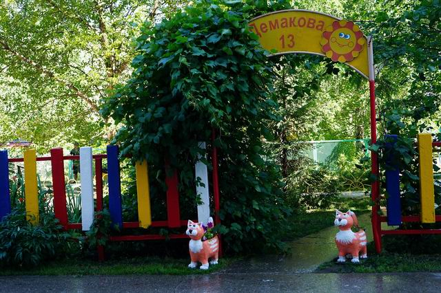 Во дворе по ул. Демакова, 13 можно встретить не только привычные для Сибири виды деревьев, такие как яблони-ранетки и кедры. Но есть тут и дуб, и туя, и виноград. Есть даже кустарник с фисташками и покрытая ягодами вишня.