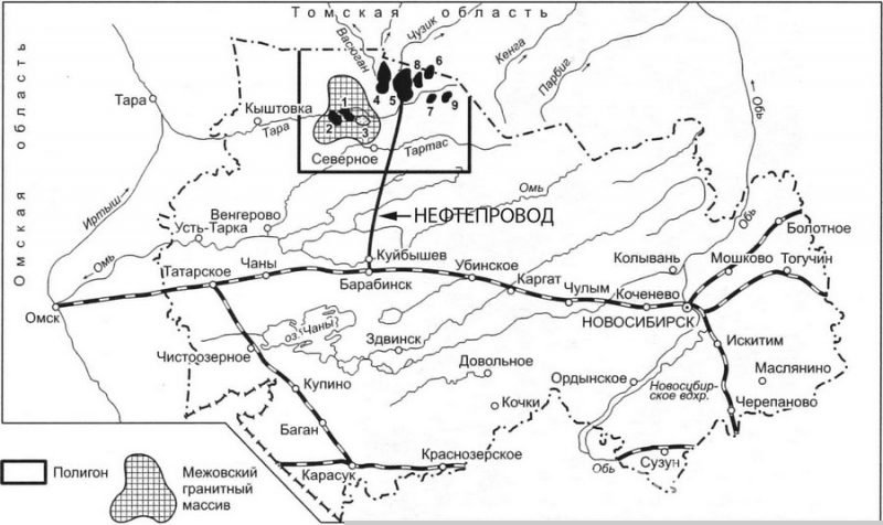 На снимке: схема расположения нефтегазовых месторождений НСО