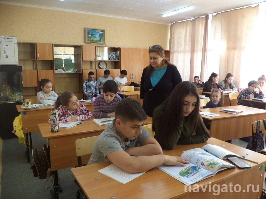 «Галёрка», где сидят взрослые юноши, как и в любой школе шепчется на далёкие от урока темы – на русском. Ребята прекрасно говорят на обоих языках, и внимательный взгляд педагога заставляет их сначала перейти на армянский, а затем включиться в перевод и обсуждение прочитанного.