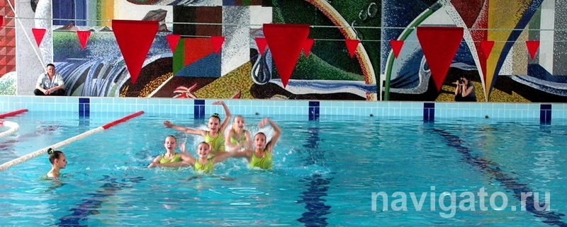 До церемонии открытия еще 15 минут. Прохожу к месту предстоящего события – большой ванне для плавания, любуюсь изумрудным водным зеркалом. Праздничный вид придает чаше отражающееся в воде красочное настенное панно, выполненное художниками Академгородка. Новому бассейну дали имя «Академволна».