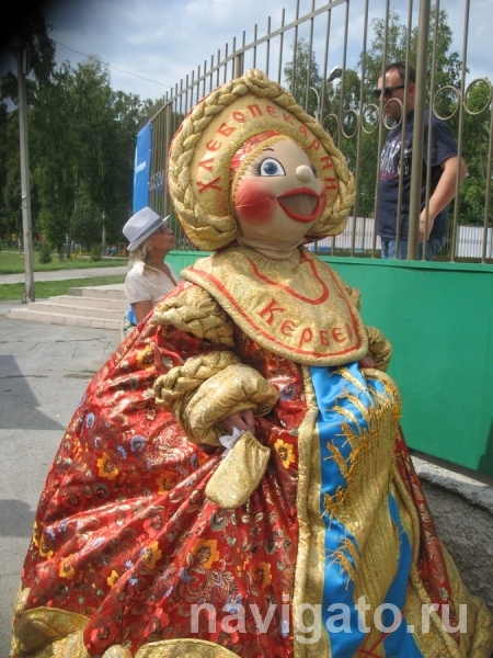Второй участник был из Искитима. «Кербер и К» очаровал детей и взрослых своей хлебной деревенькой со сдобными мельницами, пряничным домиком и песочными лошадками. А сколько восторга вызвало угощение всех огромным пряником, изображавшим российский триколор! Видно, что выездная торговля организована на предприятии на самом высоком уровне. Их ростовая кукла в виде сдобной барышни в парчовом сарафане была в этот день особо популярна во время семейных фотосессий.