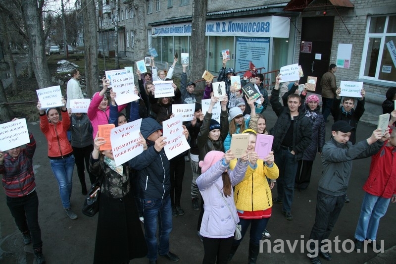 В праздничном зале библиотеки посетителей «БиблиоНочи» пригласили на виртуальную экскурсию по памятным местам Новосибирска «Чудесными маршрутами города N». Гид – библиотекарь филиала имени Зощенко Л. Донских привела интересные факты об архитектурных достопримечательностях Новосибирска. По окончании экскурсии всех собравшихся пригласили принять участие во флешмобе в поддержку чтения и книги. Он прошел на площадке перед библиотекой. Держа в руках книги и призывы, учащиеся школы №112 скандировали: «Ни дня без книги!», «Там, где книга – жизнь!», «Читаю – как дышу!», что вызвало интерес у прохожих и проезжающих мимо автомобилистов.