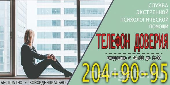 В 2018 году городская служба экстренной психологической помощи «Телефон доверия» приняла 7521 звонок. Одни обращаются с вопросами взаимоотношений, другие – с сексуальными проблемами, третьи – в поисках смысла жизни. Задача психолога – выслушать каждого, поддержать и попробовать вместе найти выход. Тел. 204-90-95, ежедневно с 14.00 до 8.00. Бесплатно. Анонимно. Конфиденциально.