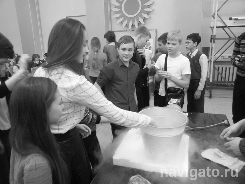 Школьники с удовольствием поучаствовали в интересных физических опытах по формированию газовой управляемой ударной волны и выявлению с помощью обыкновенной стеклянной бутылки эффекта кавитации. Они увидели, как при комнатной температуре кипит жидкий азот, какие чудесные превращения ждут воздушный шар, если его погрузить в ёмкость с ним. А ещё были управляемые взрывы и знакомство с уникальными экспонатами из музея института.
