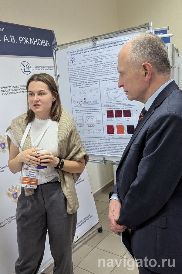Доклад научного сотрудника ИНХ СО РАН к.х.н. Дарьи Клямер назывался «Октагалогензамещённые фталоцианины металлов и гибридные материалы на их основе».