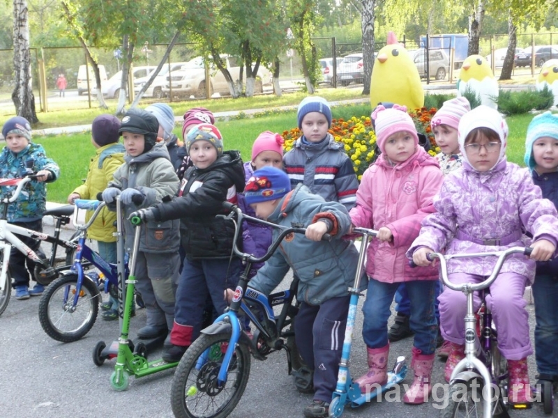 Открылись соревнования торжественным построением детей и родителей. Воспитатели Н. Кругликова и А. Паршукова провели весёлую перекличку гонщиков, напомнили им правила поведения за рулём велосипеда и самоката, пожелали успешного выступления.