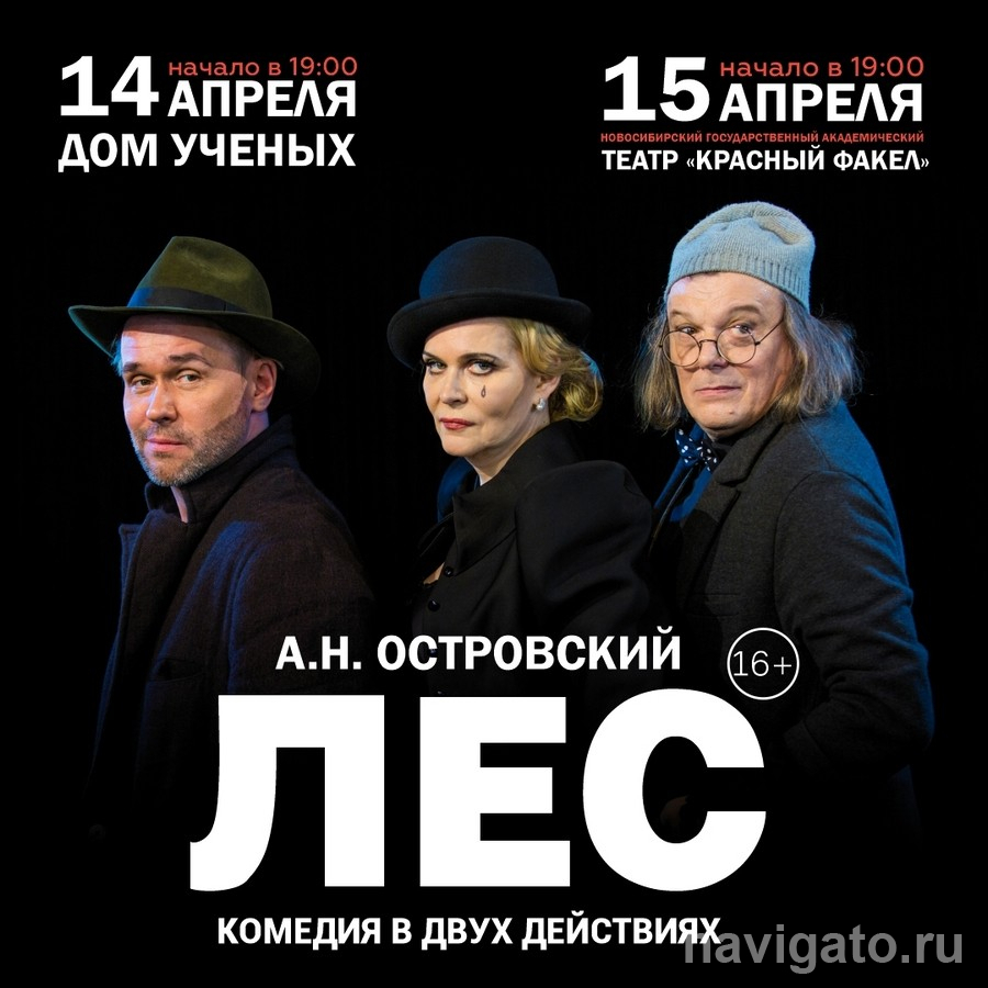 14 апреля на сцене Дома учёных покажут спектакль «Лес» Московского академического театра сатиры. В главных ролях Максим Аверин, Алёна Яковлева и Юрий Васильев.