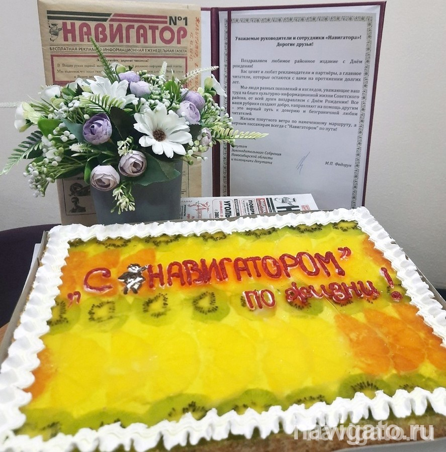В поздравительном адресе говорится: «Уважаемые руководители и сотрудники «Навигатора»! Дорогие друзья! Поздравляем любимое районное издание с Днём рождения! Вас ценят и любят рекламодатели и партнёры, а главное читатели, которые остаются с вами на протяжении долгих лет.