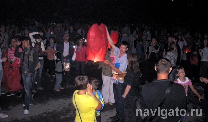 Предварительно местом проведения акции планировалась площадка около ДК «Академия». Но местные власти сочли ее неподходящей – мероприятие было квалифицировано как пожароопасное. Тогда несколько сотен человек дружно двинулись на Золотодолинскую, разобрали сердцевидные фонарики и приготовились к запуску. Темнеющее небо обещало разразиться грозой. Краткие вспышки далеких молний чередовались с голубоватыми огоньками фотокамер. Многие участники знали, что мероприятие разовое, и хотели оставить на память как можно больше фотоснимков и видеозаписей.