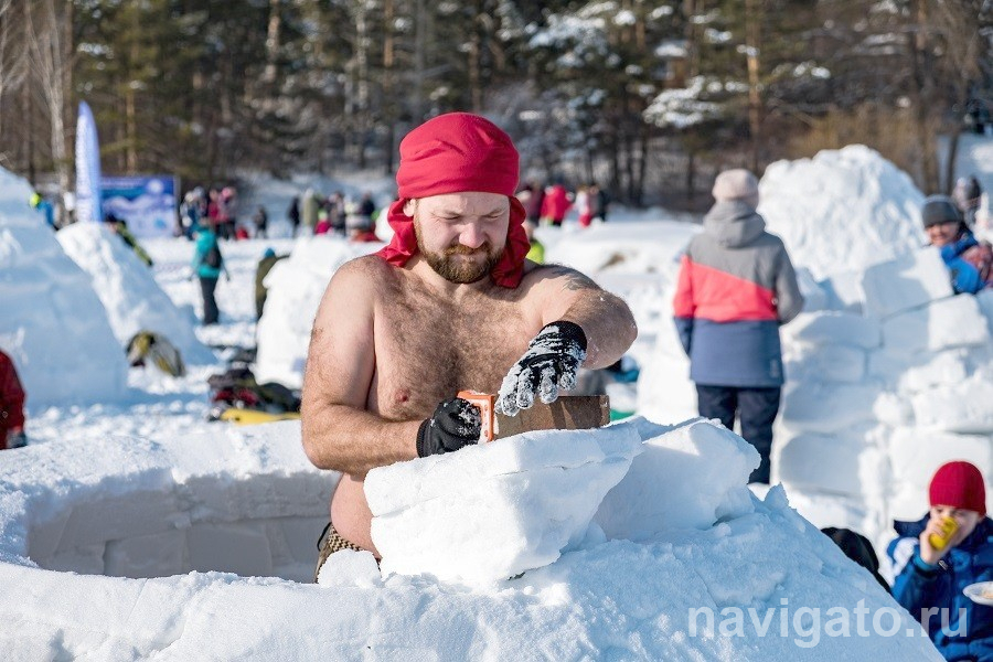 Впечатлений у участников масса. Любители зимнего плавания (в быту – моржи), мужчины с голыми торсами, улыбаются и позируют перед камерами, при этом не выпуская из рук ножовки: нужно работать, строить свой снежный дом.