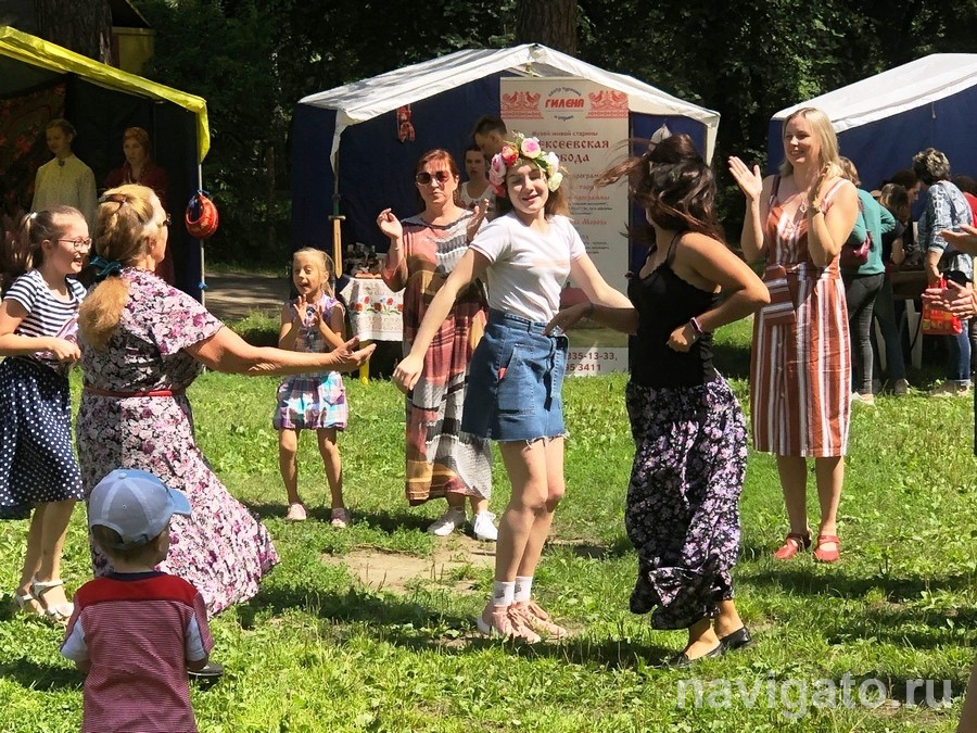 Как только несколько человек у сцены, взявшись за руки, образовали круг, исчезли тучи и смог и в небе засияло жаркое солнце, согревавшее всех до самого вечера. Затем заводилы прошлись цепочкой между лавочек, приглашая сидящих присоединиться к ним. Одни стеснительно отказывались, другие с удовольствием становились частью большого дружного хоровода. Так начался фестиваль.