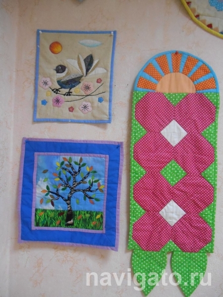 В экспозиции можно увидеть образцы лоскутного шитья – от одеял до игольниц, шитые и вязаные детские игрушки, фантазийные авторские букеты и предметы интерьера.