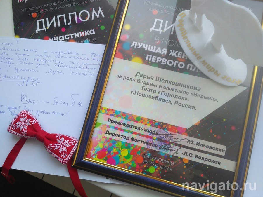 Кстати, с 25 по 29 апреля театр участвовал в международном фестивале в г. Барановичи (Белоруссия), куда возил спектакль «Ведьма» по рассказам Антона Чехова. Актриса и режиссёр Дарья Шелковникова получила там диплом за лучшую женскую роль!