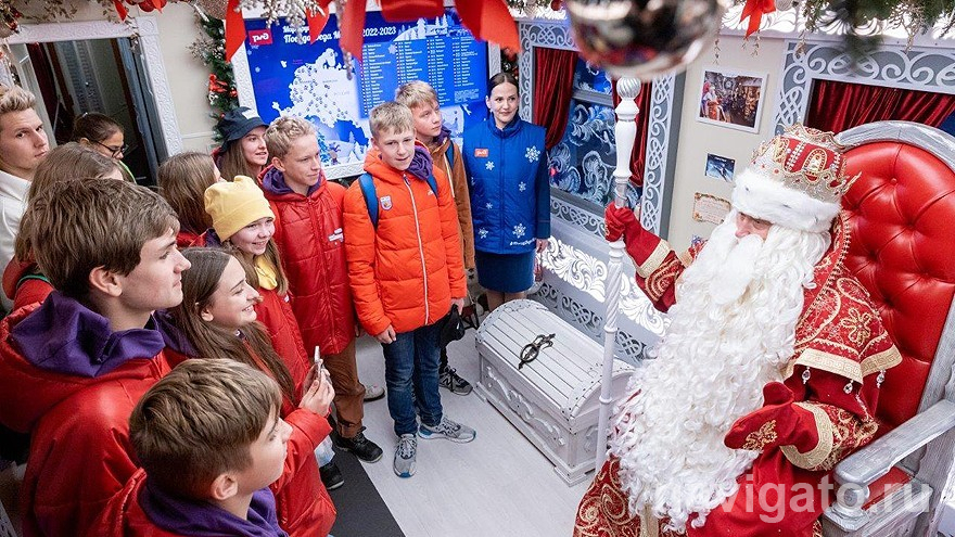 22 октября специальный поезд из 19 вагонов выезжает из Великого Устюга. В нём оборудована сказочная деревня для игр и квестов, салон-приёмная доброго волшебника и лавка с новогодними сувенирами.