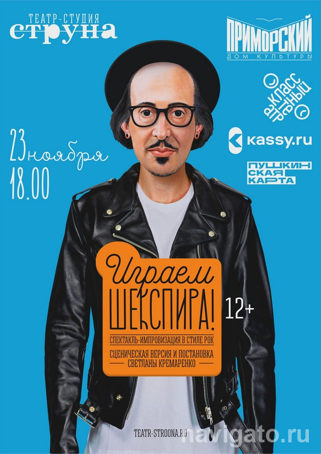 В этом сезоне в проект включены четыре постановки. Начнётся всё 23 ноября в 18 часов со спектакля «Играем Шекспира!» (12+) с подзаголовком «спектакль-импровизация в стиле рок». Сборная солянка из разных произведений великого драматурга («Гамлет», «Король Лир», «Ромео и Джульетта», «Кориолан», «Сон в летнюю ночь»), приправленная шутками и драматическими историями из жизни Шекспира, придуманная на творческой кухне профессионального театра и поданная под звучание рок-музыки – вот такое блюдо приготовила «Струна» для зрителей. Сценическая версия и постановка – Светланы Кремаренко. Участвуют Михаил Ощепков, Павел Бекетов, Светлана Кремаренко, Григорий Симонов, Мила Образцова.