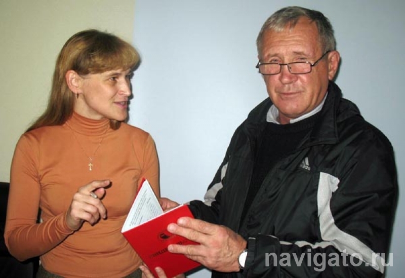На снимке: Е. Линева вручает свидетельство В. Оленникову