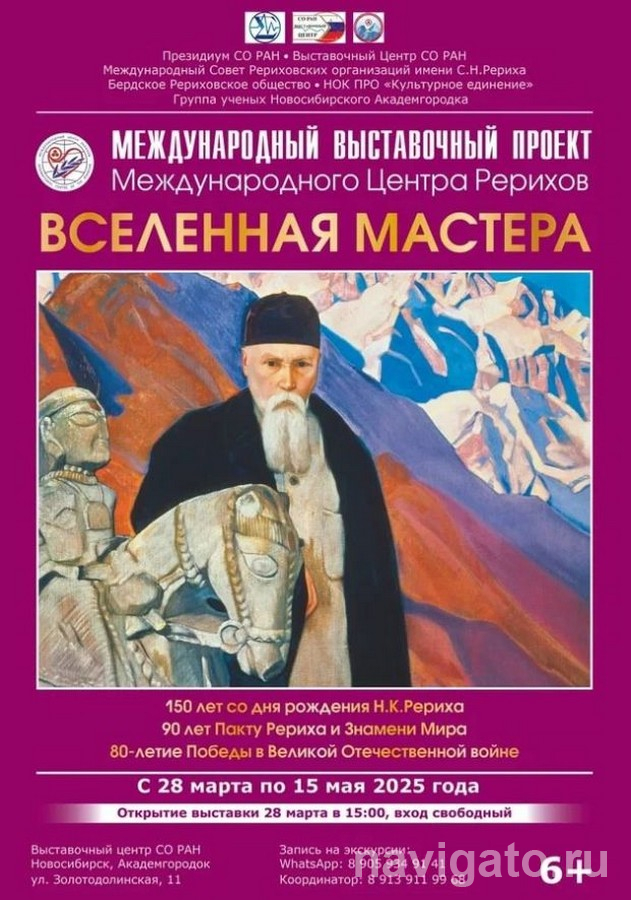 29 марта  в 14:00 в Выставочном центре СО РАН состоится лекция «Красота Древней Руси. Путешествие Рерихов по ”старине” в 1903-1904 гг.» в рамках Международного  выставочного проекта Центра Рерихов «Вселенная Мастера». Об экспедиции Николая Константиновича и Елены Ивановны Рерихов по 40 городам страны в указанные годы расскажет сотрудник Международного Центра Рерихов (Москва), советник РАЕН Сергей Скородумов.