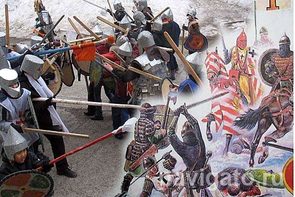 После длительных тренировок и вкусного обеда наступает час сражения. Первоначальное построение исторически достоверно: крестоносцы стоят клином, у русских, помимо главной линии пехоты, есть еще войска правой и левой руки (это необходимо для окружения и захвата противника). Сзади идет обоз, в котором две девушки с аптечкой и полковой казной, наполненной «соколиками». Эту экзотическую валюту бойцы обеих команд зарабатывали в ходе викторины. Вот где пригодились ребятам знания русской истории, полученные в школе!