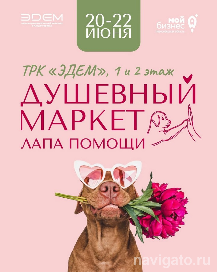 Так называется душевный маркет, который пройдёт 20 и 22 июня в ТРК «Эдем». Часть средств перечислят в помощь местному приюту для животных. В программе: ярмарка изделий от сибирских брендов, мастер-классы по грумингу, благотворительная фотосессия с животными, сбор кормов и лекарств для четвероногих. Будут организованы воркшопы для детей, бьюти-зона и лотерея для всех участников маркета.
