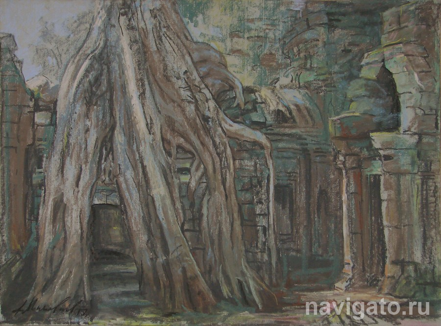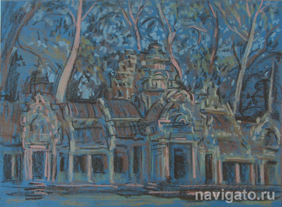 Все работы цикла созданы непосредственно во время пленэра в Камбодже. С большим трудом договорились о работе на территории знаменитых старинных храмов: Ангкор-Ват, Байон, Та Прум. Художник за несколько дней запечатлел величие, красоту древних памятников, живописных окрестностей.