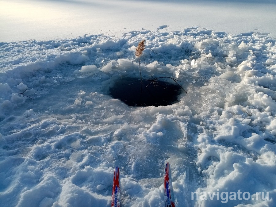 Если вы всё-таки собираетесь в марте отправиться на рыбалку, выбирайте места с безопасной толщиной льда.