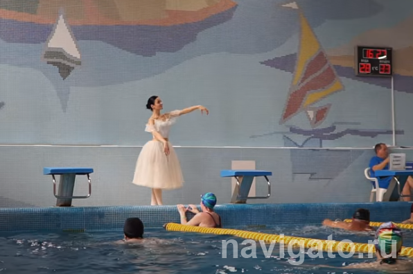 Конкурсная работа была снята в рамках одной из учебных дисциплин. На видео – балерина танцует у бассейна.