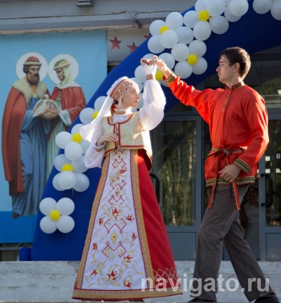 Мы чествовали семью Полеевых, которая на днях отпраздновала серебряный юбилей; семью Кичигиных, отметивших 20 лет супружества (наравне с родными детьми воспитывают и двух приёмных ребятишек). Хрустальная свадьба в семье Киселёвых, у которых за 15 лет семейной жизни родилось пятеро чудесных деток! Зажигательным латиноамериканским танцем порадовала зрителей Марина Алёхина, у них с супругом «деревянная» свадьба, а её младшая сестричка Танюшка исполнила весёлую песенку. Недавно отметила ситцевую свадьбу семья Марии и Евгения Симоновых, которым наша отдельная благодарность и за танец, и за роль Петра и Февронии на празднике!