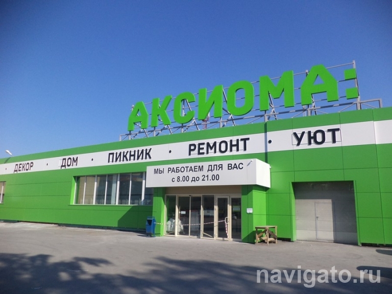 17 июля на улице Кутателадзе, 4 открылся гипермаркет строительных и отделочных товаров «Аксиома». Он занял помещения ранее размещавшихся здесь магазинов «Быстроном» и «Абрис». Это второе торговое предприятие барнаульской сети в Новосибирске (первое находится на улице Планетной, называется «Формула М2»).