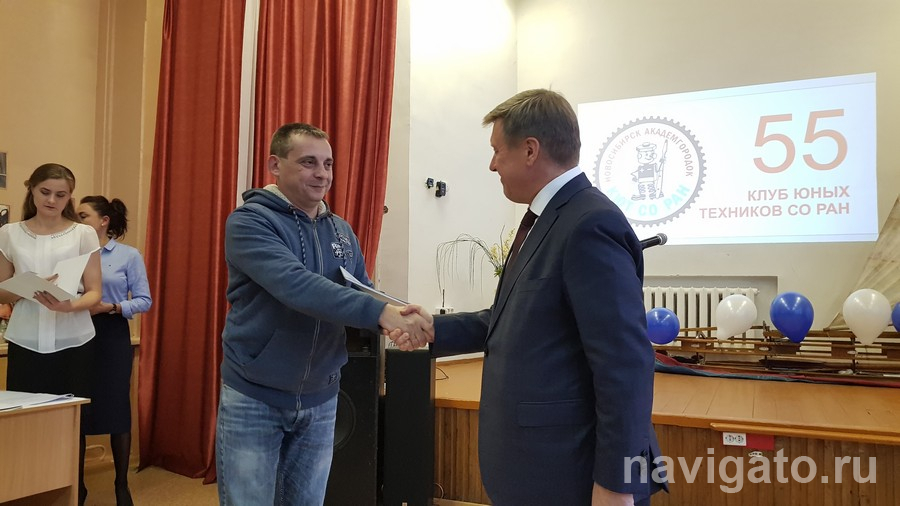Депутат горсовета Наталья Пинус вручила бывшему директору клуба (1970-2010 гг.) легендарному Вадиму Шолохову палочки для скандинавской ходьбы, а директор СУНЦ НГУ Николай Яворский преподнёс юным техникам картину – прекрасный пейзаж. Природная тематика выбрана не случайно: