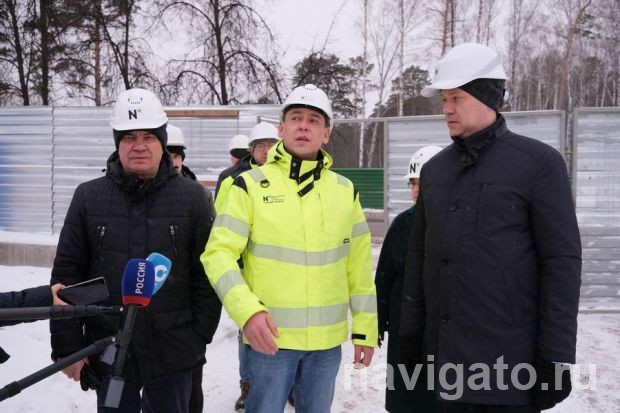 Андрей Травников посетил стройплощадку вместе с ректором университета Михаилом Федоруком и представителем компании-благотворителя, директором проекта ООО «Юнистрой» Кириллом Марковым.