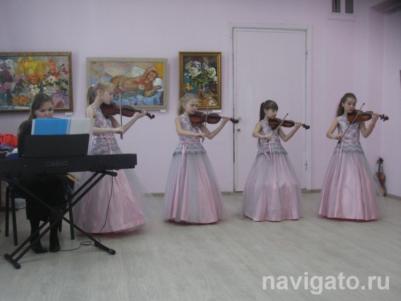 Гости в ярких карнавальных костюмах создавали праздничную атмосферу и выглядели романтично. Неспешно прохаживаясь по залу, посетители лицезрели друг друга, живописные полотна Оксаны Новиковой, слушали классические музыкальные произведения в исполнении ансамбля скрипачей «Созвучие» и солисток детской музыкальной школы №10.