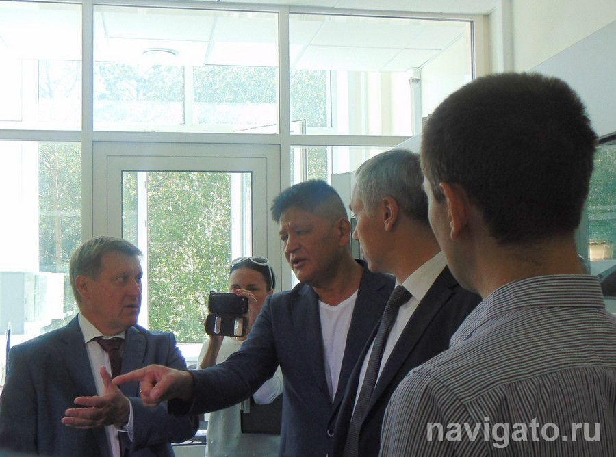 На снимке: Виталий Хан с Анатолием Локтем и Андреем Травниковым в СКТБ «Катализатор», август 2018 г.