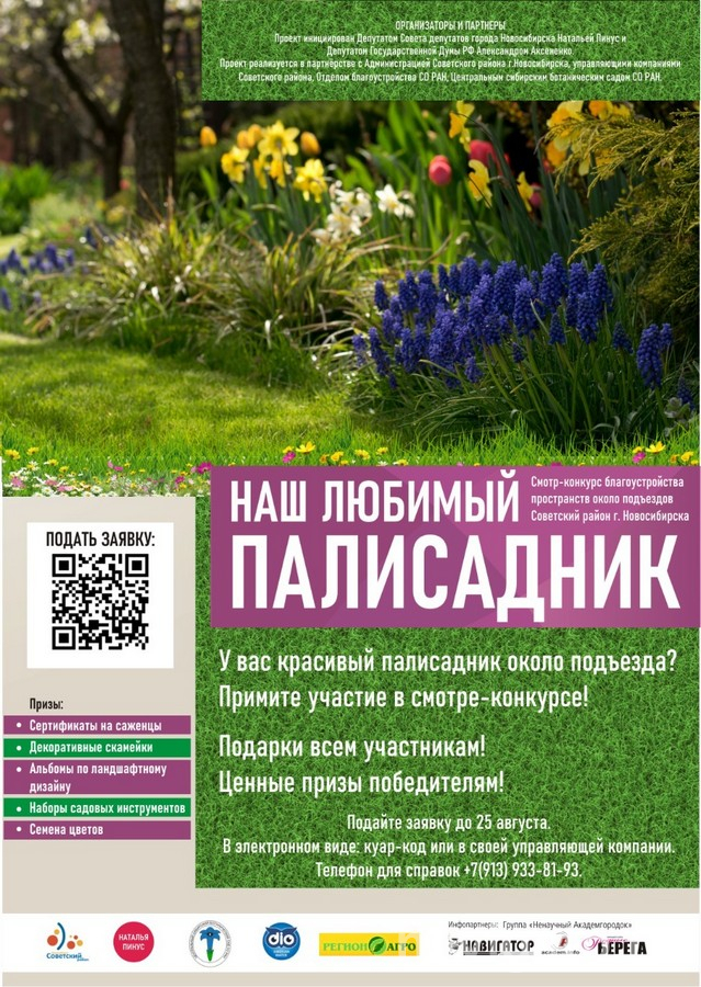 Проект реализуется совместно с депутатом Госдумы РФ Александром Аксёненко в партнёрстве с администрацией Советского района, управляющими компаниями ЖКХ, отделом благоустройства УД СО РАН и Центральным сибирским ботаническим садом. Будет оцениваться пространственная компоновка палисадника, сочетание и разнообразие растений, ухоженность пространства. 15 победителей наградят 17 сентября во время празднования Дня Академгородка.
