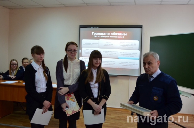 В конференц-зале школы с ребятами и учителями встретился начальник департамента по чрезвычайным ситуациям и мобилизационной работе мэрии Новосибирска Данияр Сафиуллин. Он вручил почетные грамоты и памятные подарки Анастасии Таран, Екатерине Брагинец, Снежане Архипенко из 9«б». В ноябре 2013 года девушки предупредили пожар.