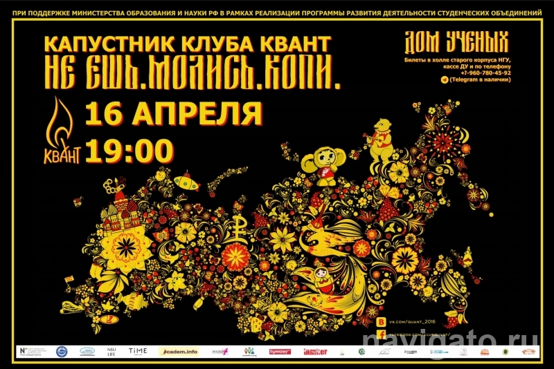 Билеты можно приобрести в холле старого корпуса НГУ, кассах ДУ и по телефону - 89607804592 (Telegram в наличии)