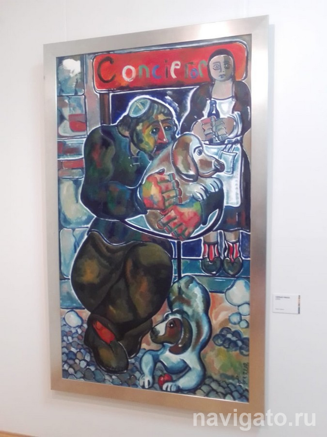 «Магический реалист», Церетели-живописец использовал яркие краски. Карнавальная игра образами, фирменный гротеск в портретах – без намёка на шарж. Представлены несколько серий работ, выполненных в Москве, Нью-Йорке и Париже: «Цирк», «Я садовником родился», «Бебико».