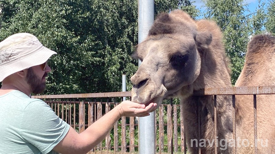 Отдельная любовь гостей фермы – верблюд Василий. Как было отмечено на экскурсии, товарищ он очень вежливый и воспитанный, на гостей не плюёт. Красавец Вася аккуратно берёт угощения с рук, позирует перед фотокамерой (но её лучше близко не подносить – может попробовать на зуб) и даже разрешает почесать себе щёчки.