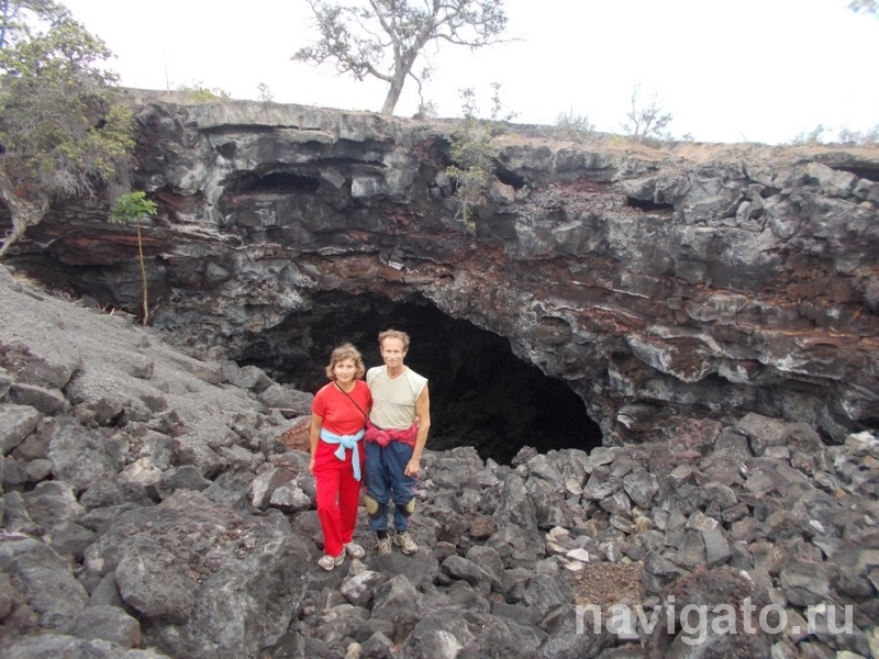 На снимке: у входа в базальтовую пещеру протяженностью 32 км, остров Биг-Айленд