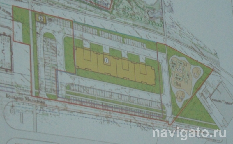 Представитель проектировщика ООО «АрхиГрад» Алексей Нестёркин рассказал, что правительственная комиссия приняла решение земельный участок по бульвару Молодёжи между строящимся домом №15 (стр.) и ТД «Эрнест» передать жилищному кооперативу «Протон» для строительства многоквартирного дома. Проект межевания предполагает образование единого земельного участка, общая площадь которого впоследствии составит 1,24 га.