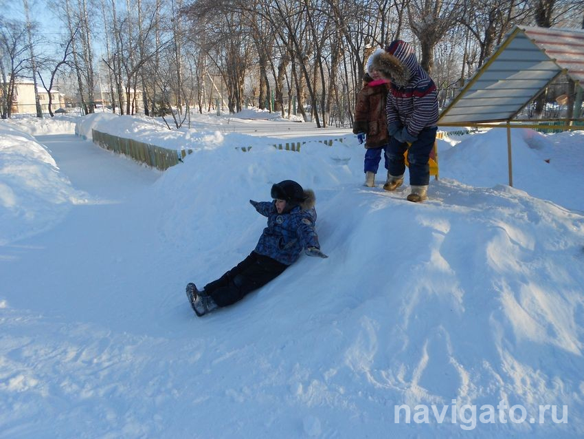 Сейчас ситуация осложнилась: он лазит по всяким снежным горкам. Но там высоко! Как быть, если кто-то начнёт толкаться на самом верху? У меня язык не поворачивается сказать: толкни в ответ. Ведь там такие же малыши, и поменьше есть, шею свернут. Запрещаю толкать на возвышенности вообще, говорю, чтоб сам садился и съезжал.