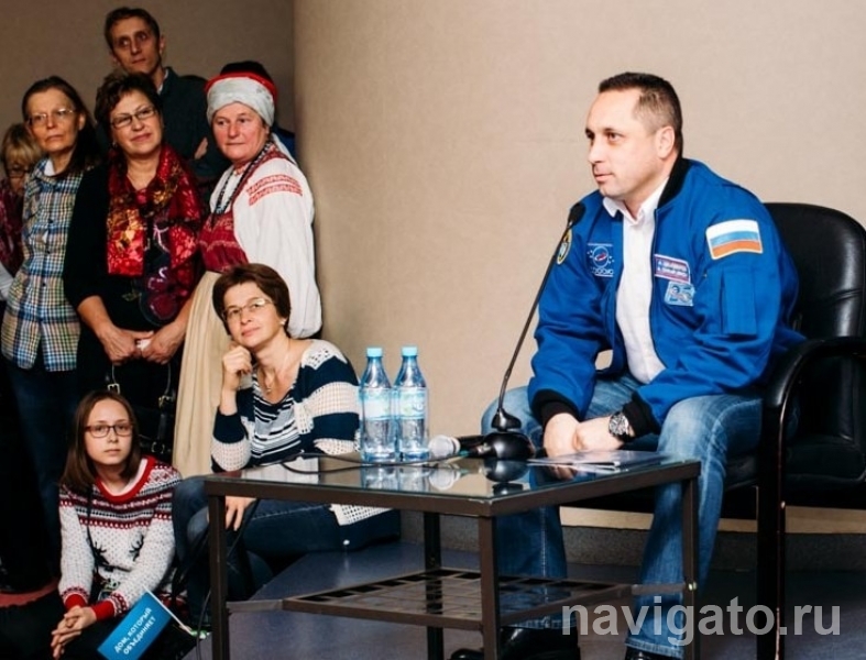 Взрослые задавали иные вопросы. Спросили, скучает ли он в длительных командировках по семье. «Мы общаемся с родными чаще, чем моряки дальнего плавания. У нас каждый имеет спутниковый телефон, есть видеосвязь. Одним словом, мы не оторваны от мира, от дома, в курсе земных и семейных событий», – ответил гость. Кто-то поинтересовался, готовят ли у нас женщин для полёта в космос.