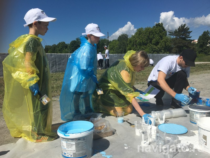 В этом году организаторы разделили участников по командам и объявили соревнование. Лучшей достался специальный приз от комитета по экологии мэрии. Кроме того, по два человека от каждой группы рисовали граффити «Река Добра» на 150-метровом панно парапета набережной ГЭС. Координировал процесс художник Стас Раков.