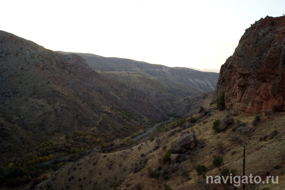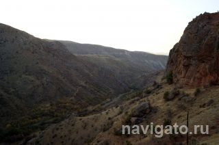 Далее наш путь лежал через несколько перевалов к Нораванку – монастырю, построенному в XIII веке. Перед трудной горной дорогой следовало основательно подкрепиться. Буквально в нескольких километрах от Хор Вирапа, в посёлке Покр Веди мы остановились в придорожном кафе и нисколько не прогадали. Национальные армянские блюда, поданные в глиняной посуде ручной работы, были великолепны. Мои попутчики по достоинству оценили и домашнее вино, а я ограничился травяным чаем...