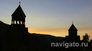Солнце начинало клониться к западу, а до Нораванка нужно было проехать около 80 км. Дорога, постепенно поднимающаяся в горы, шла вдоль границы с Азербайджаном, и нам то и дело попадались пограничные укрепления, сильно напоминающие пулемётные доты. Сразу вспомнились непростые отношения некогда братских республик и рассказы наших попутчиков-армян по дороге Тбилиси – Ереван о периодически случающихся перестрелках... Я невольно увеличивал скорость автомобиля и стал притормаживать, только когда въехал в горное ущелье. Дорога к монастырю очень непростая, но окружающий нас пейзаж был просто великолепен. Наконец, в лучах заходящего солнца нам открылись величественные здания Нораванка: церкви, часовни, усыпальницы и хачкары – каменные стелы с резным изображением креста.