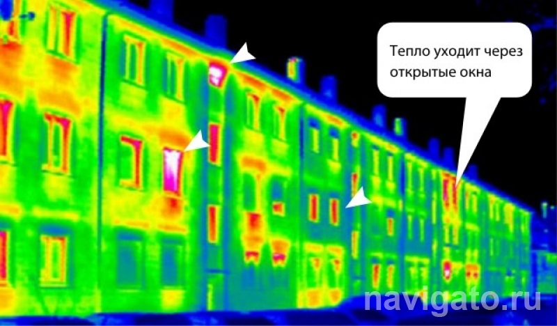 Как можно регулировать температуру воздуха? Самый простой метод – проветривание. Люди открывают форточки, и излишки тепла уходят на улицу. Если зимой посмотреть на дом с помощью тепловизора (устройства, которое позволяет отследить тепловое излучение объекта), то будет видно, как тепло идет через открытые окна. То есть, по сути, зачастую мы отапливаем улицу, и там, где установлены общедомовые приборы учета, существенно может вырасти плата за отопление.